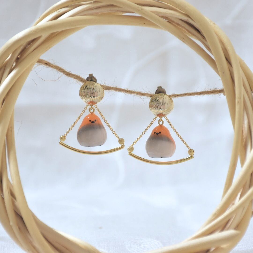 丸っこいコマドリの姿に合わせて、ピアスの金具部分も丸いシルエットを選びました*