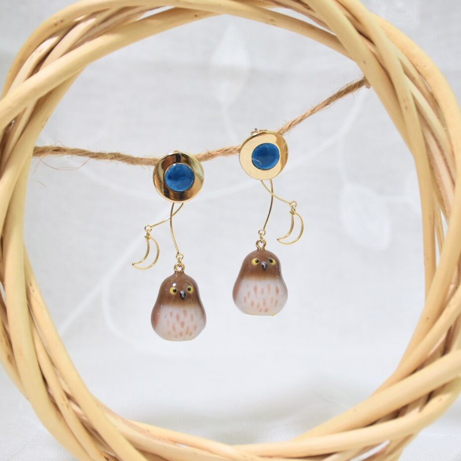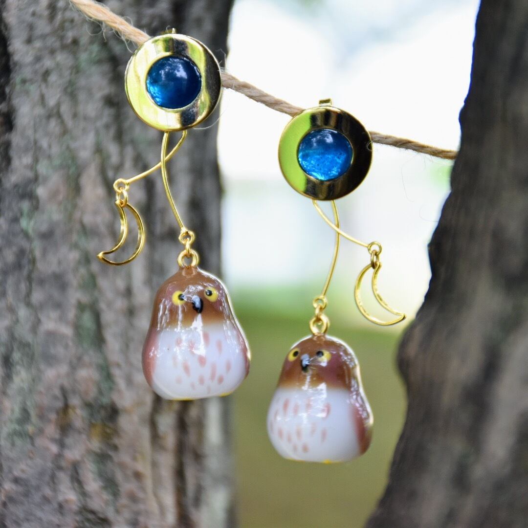 アオバズクをモデルに、フクロウのピアスを作りました*