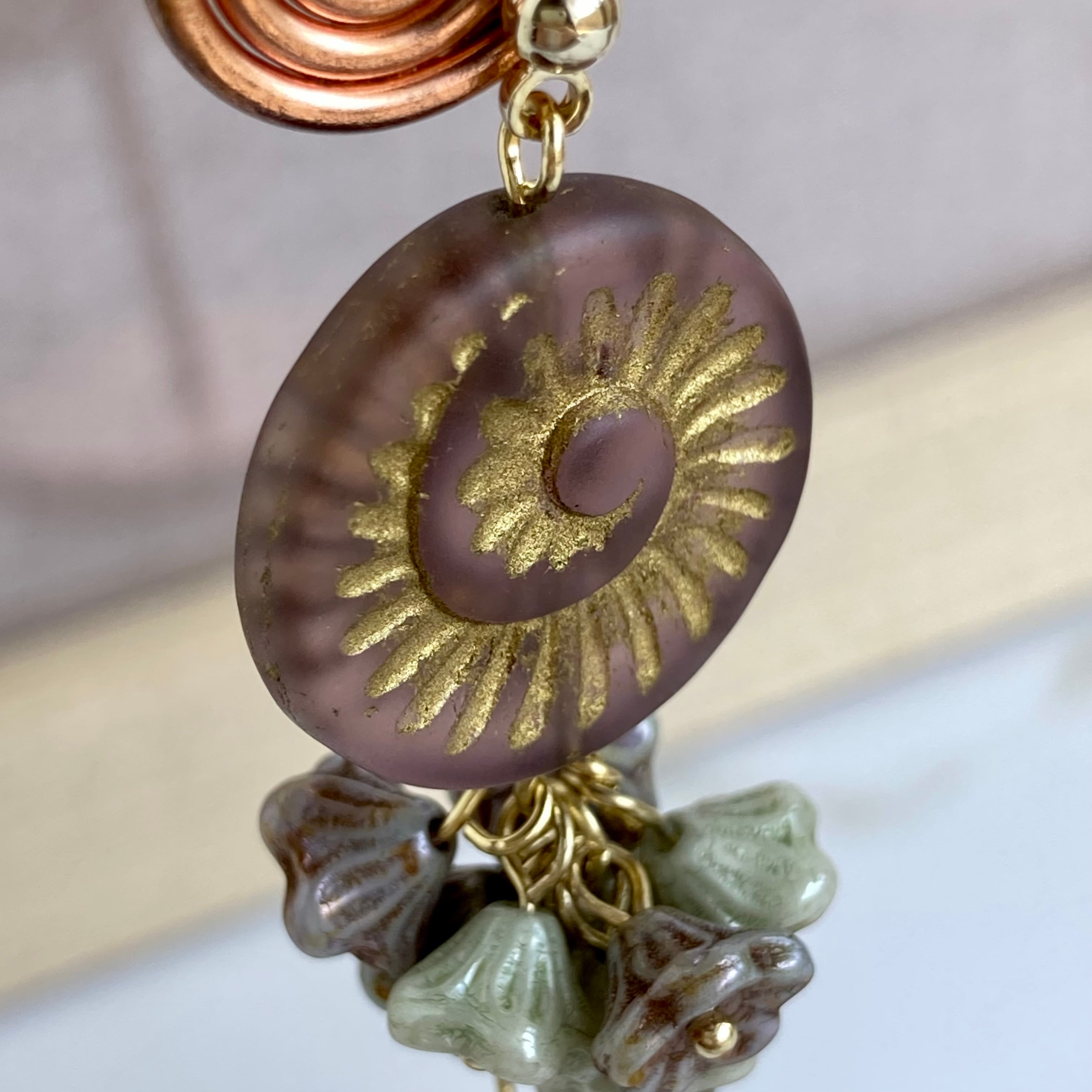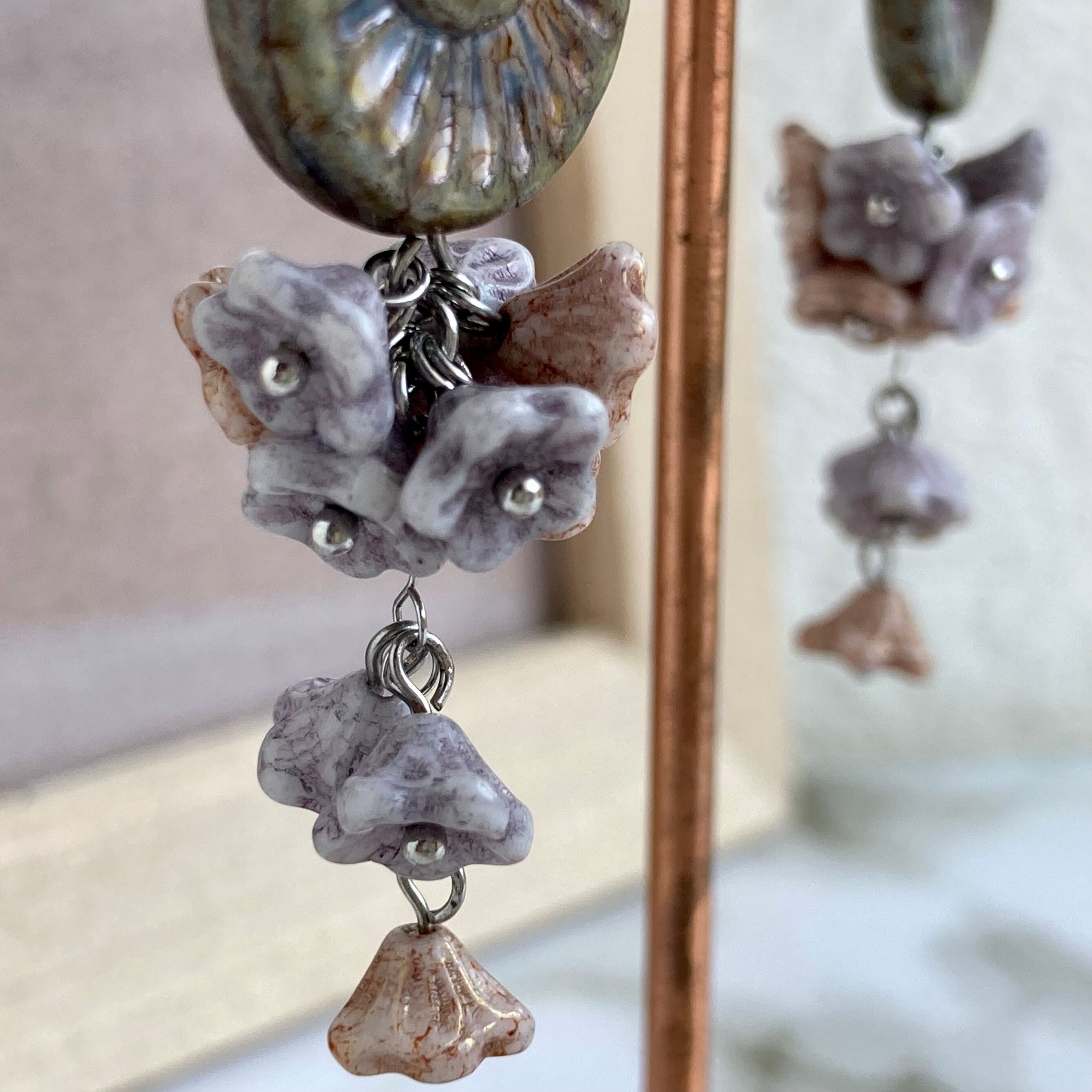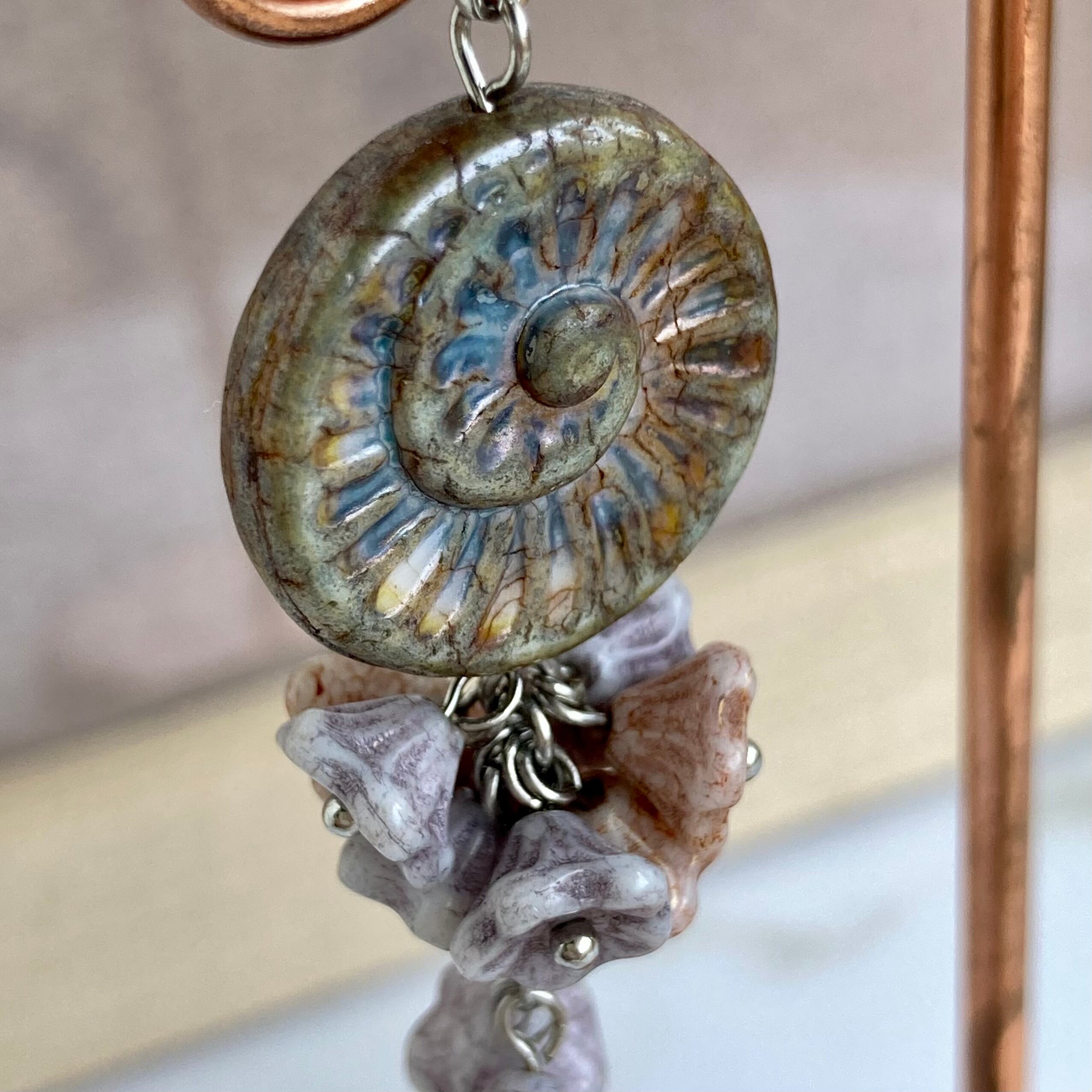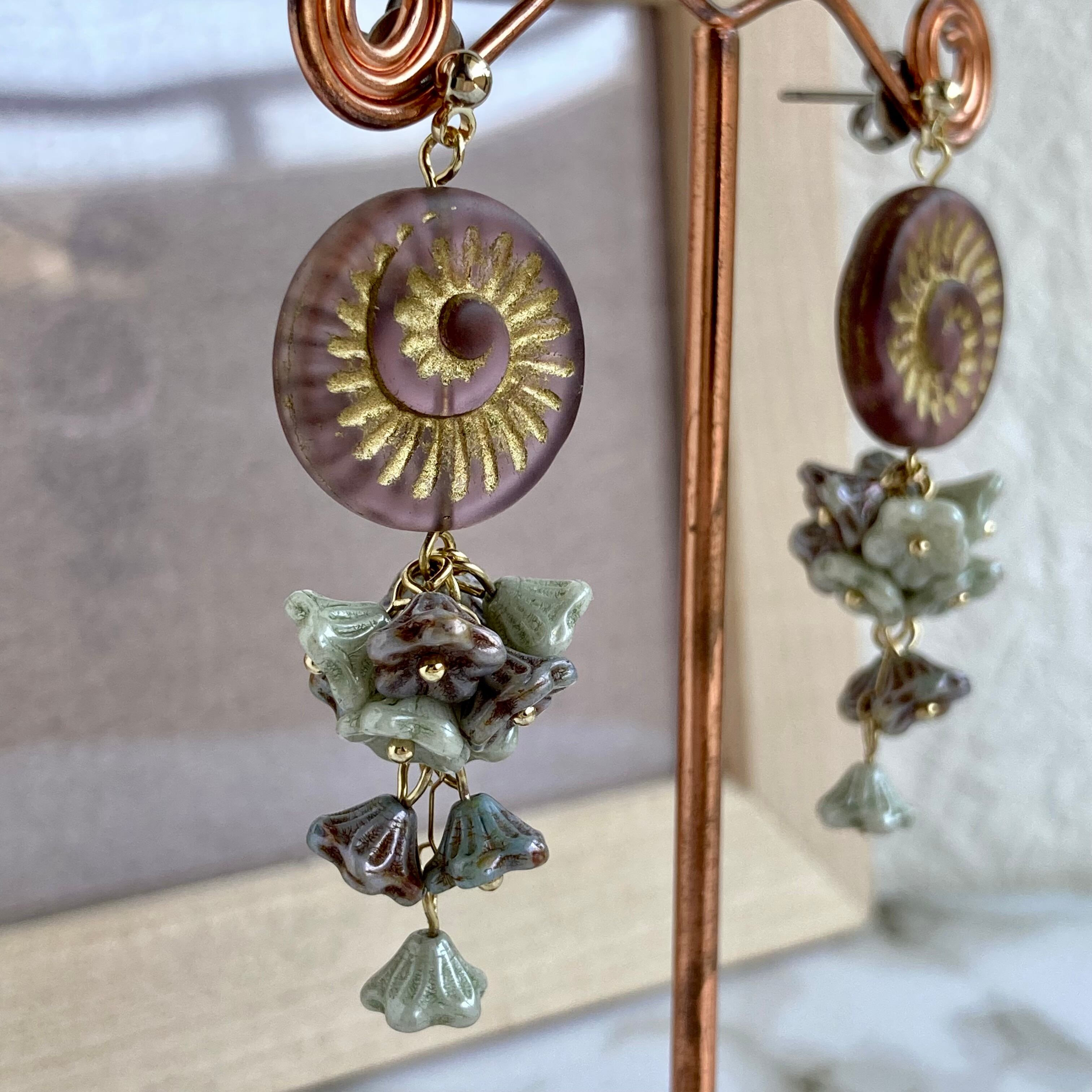 アンモナイト×花×チェコビーズと私の好きなものを詰め込んだ作品です。
