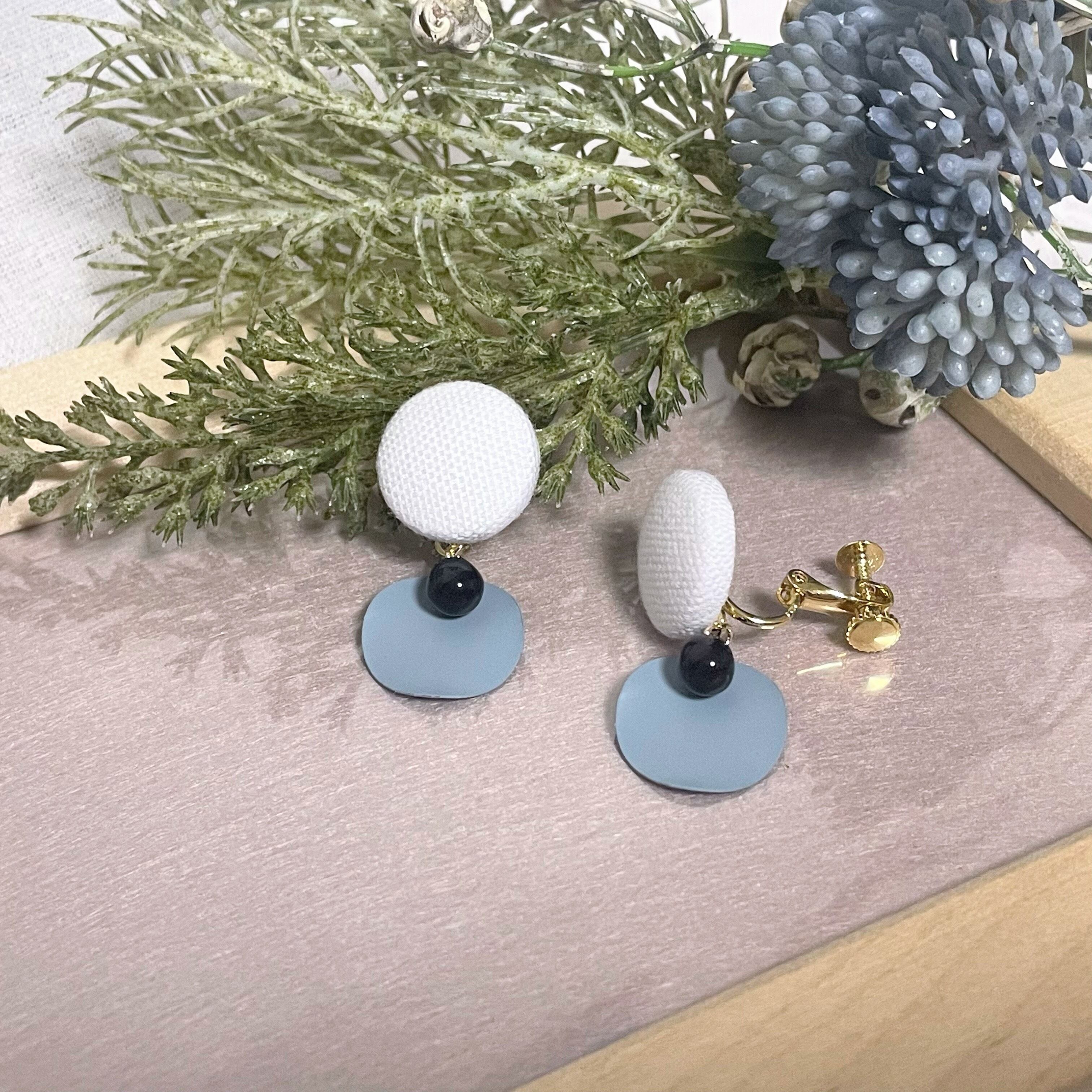 白のカボションは、布製くるみボタンを使用しておりますので、オールシーズン使いやすく、明るい爽やかな雰囲気が出ています。
