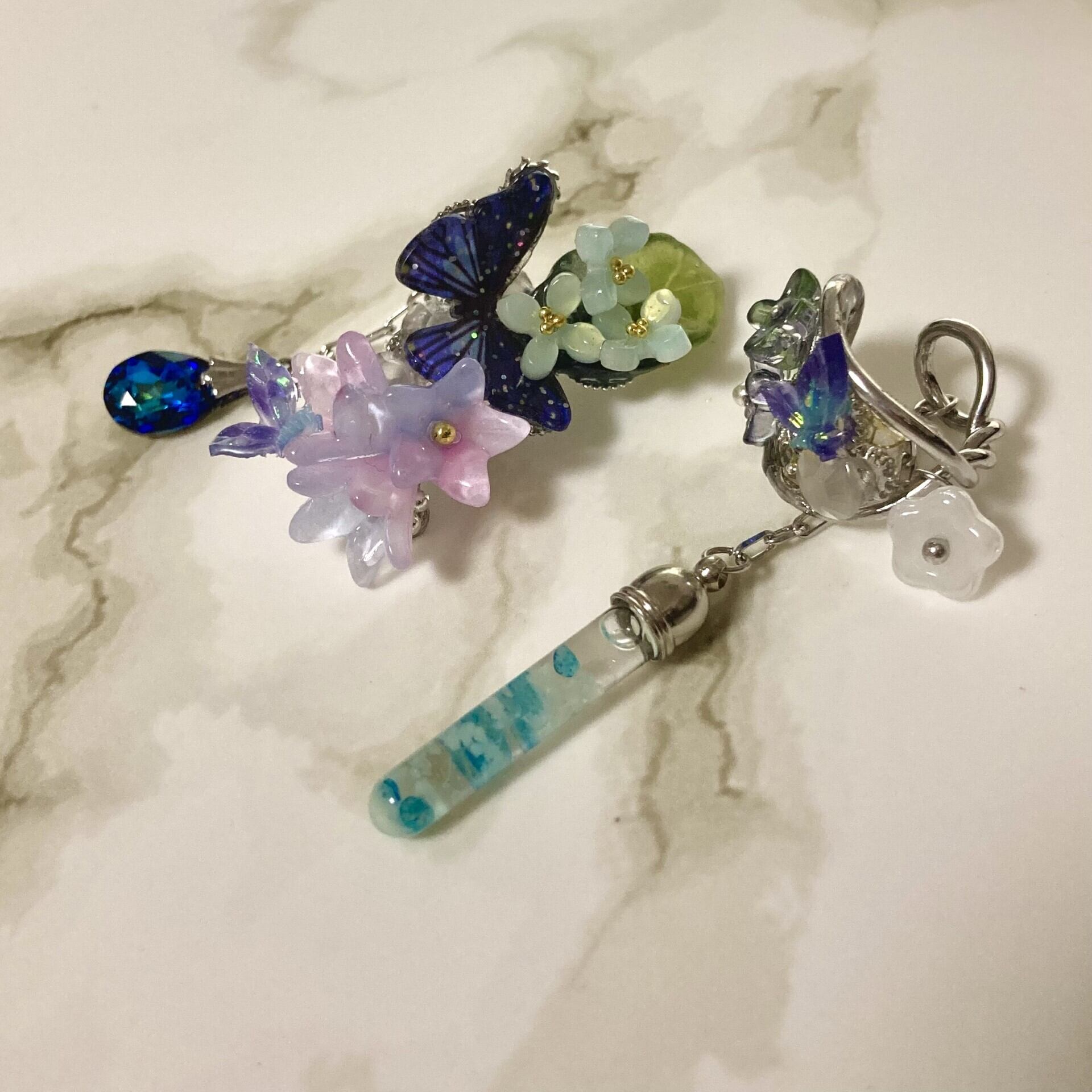 クリップタイプと掛けるタイプのイヤーカフセットです。