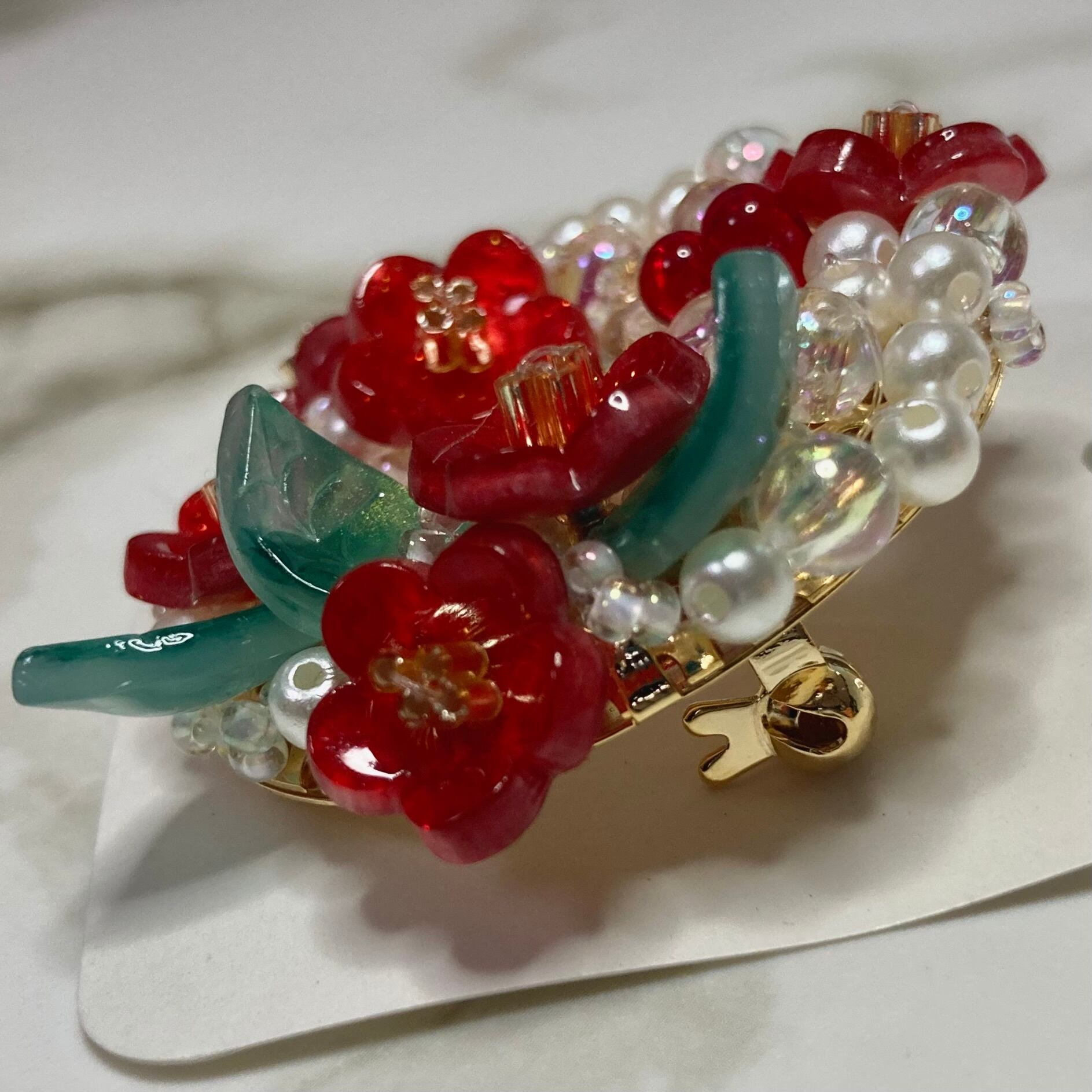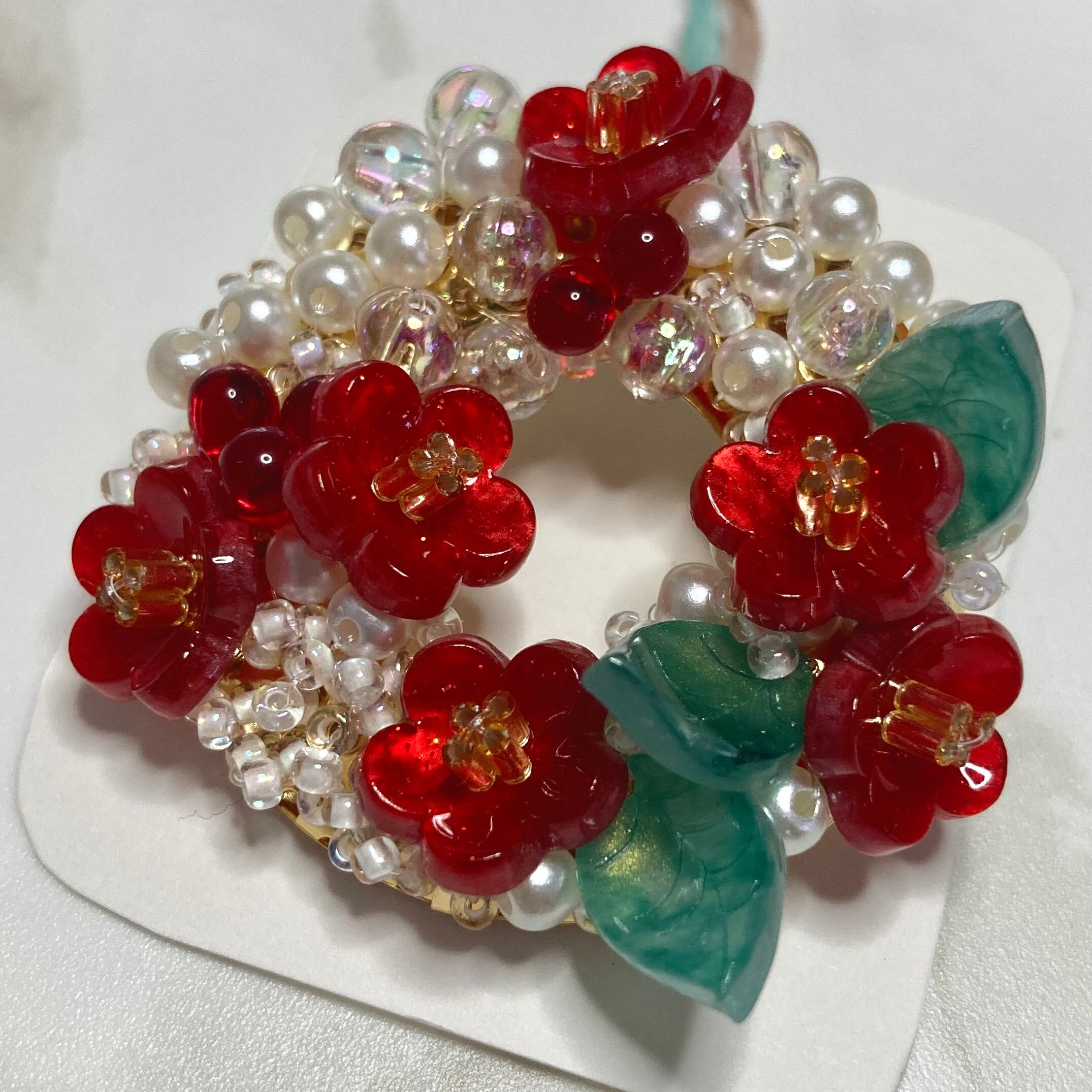 静かに積もった雪に咲く椿をアクセサリーにしました。