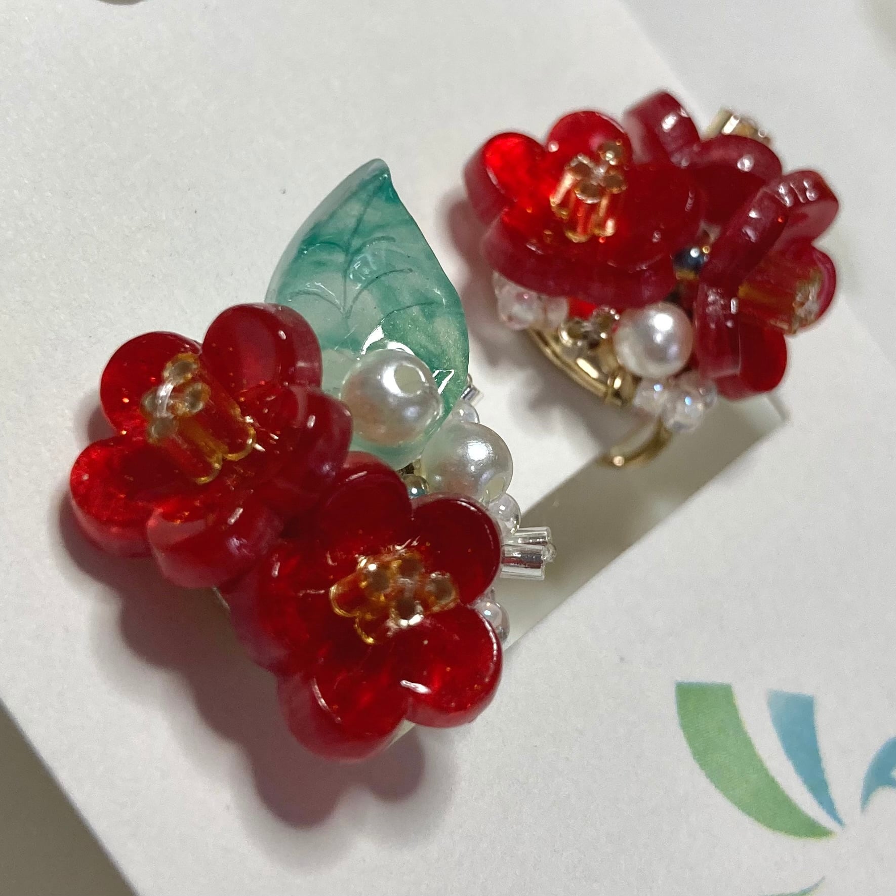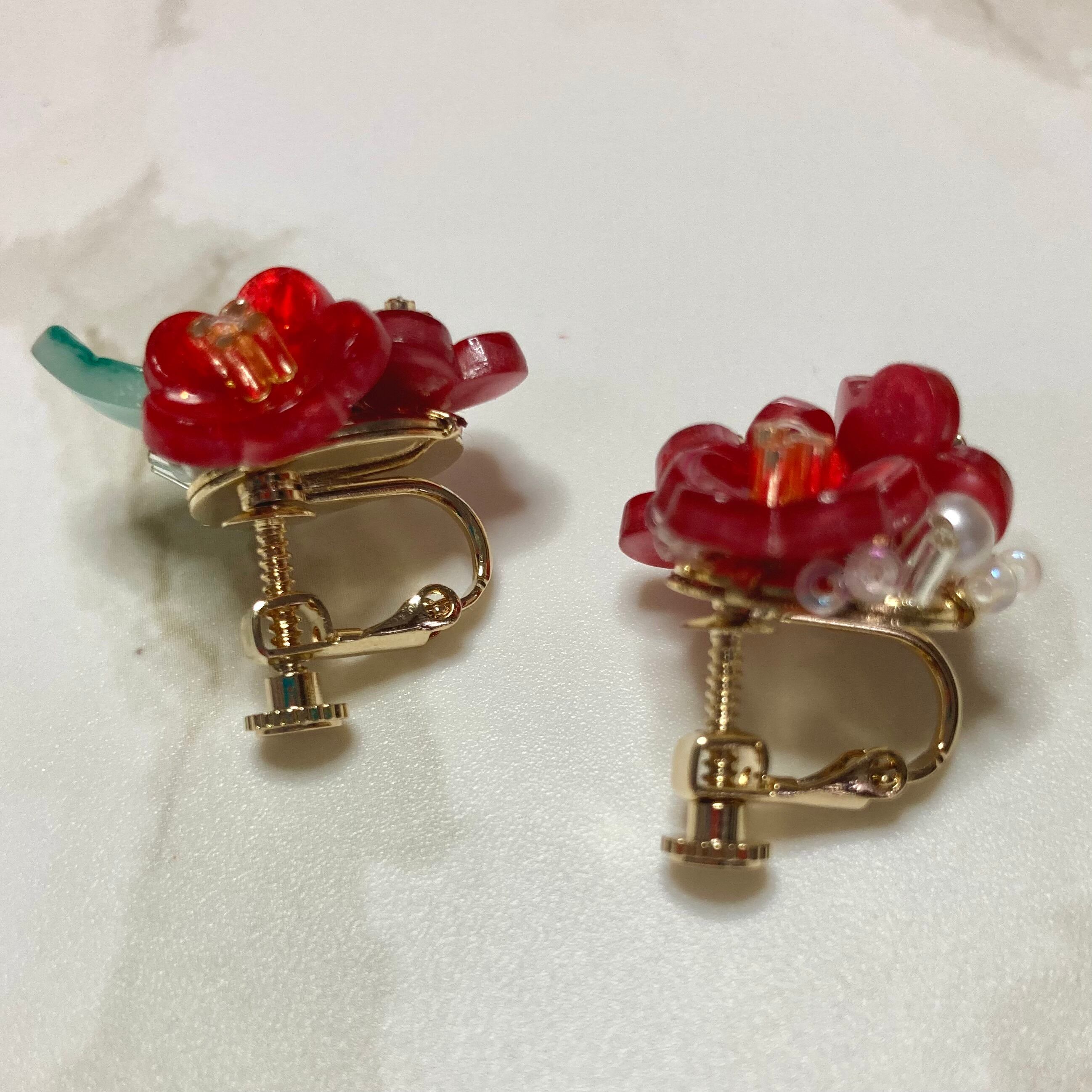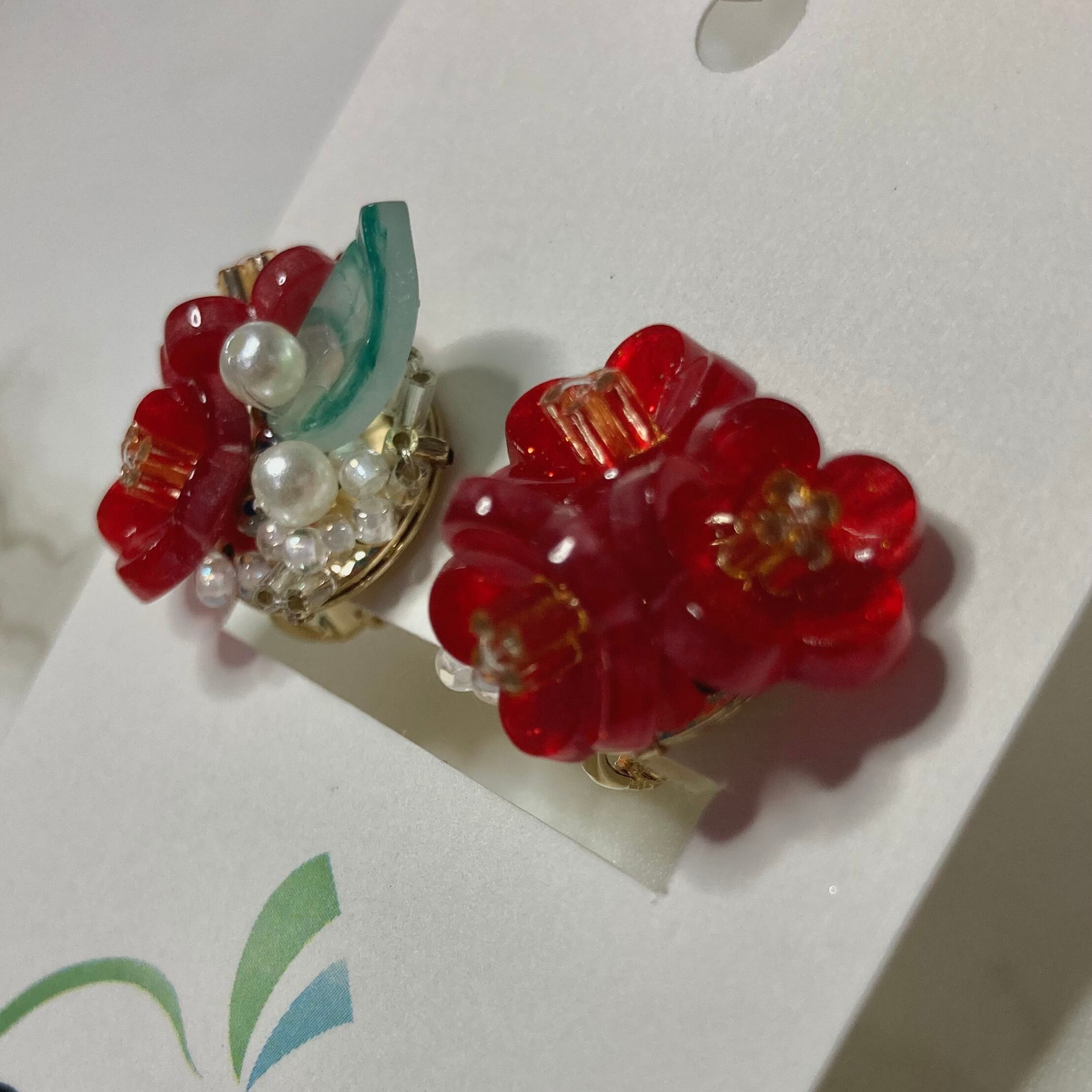 静かに積もった雪に咲く椿をアクセサリーにしました。