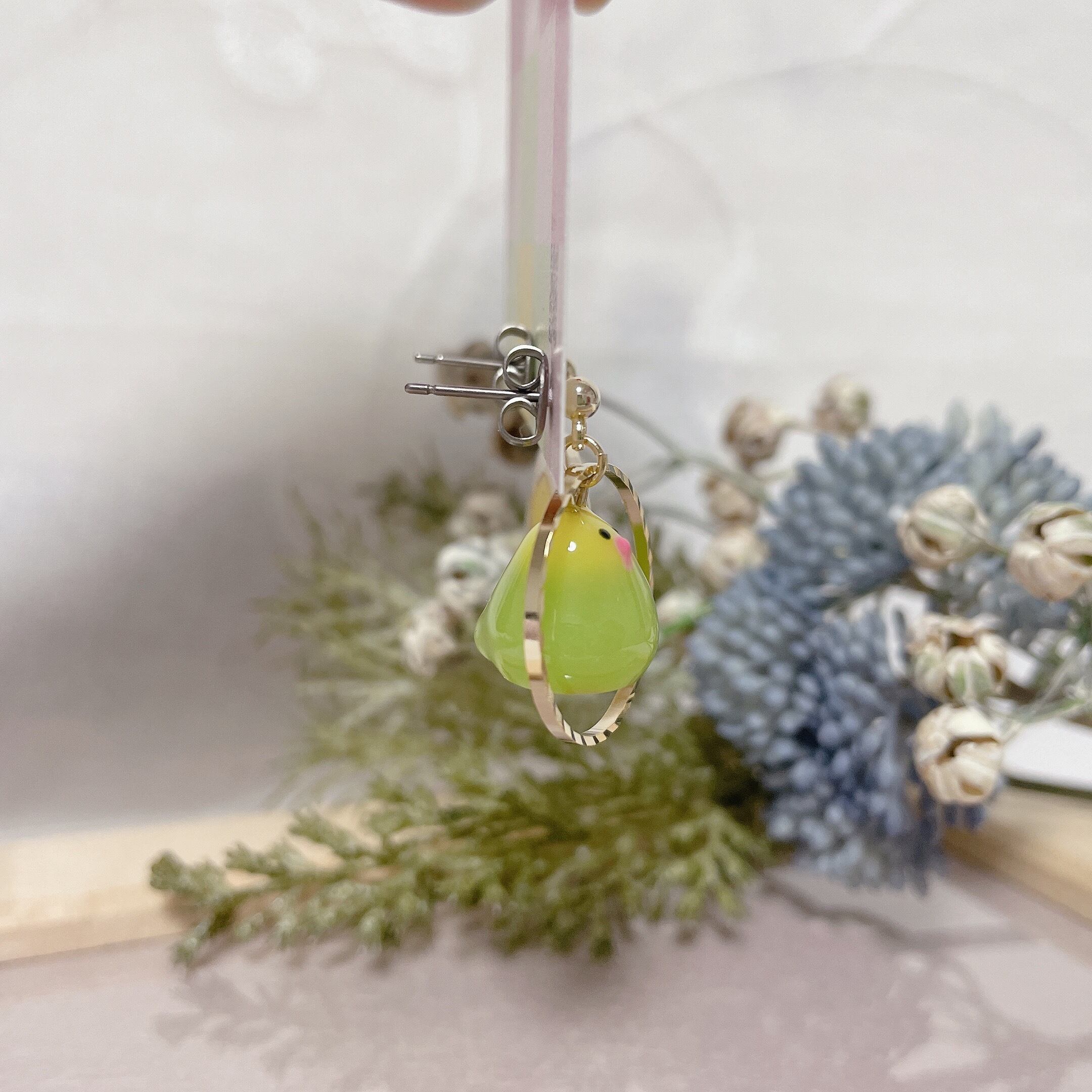 耳元でぷらぷら揺れる可愛い鳥さんに、ご自身も、周りの方々も癒されること間違いなし(*´ω`*)