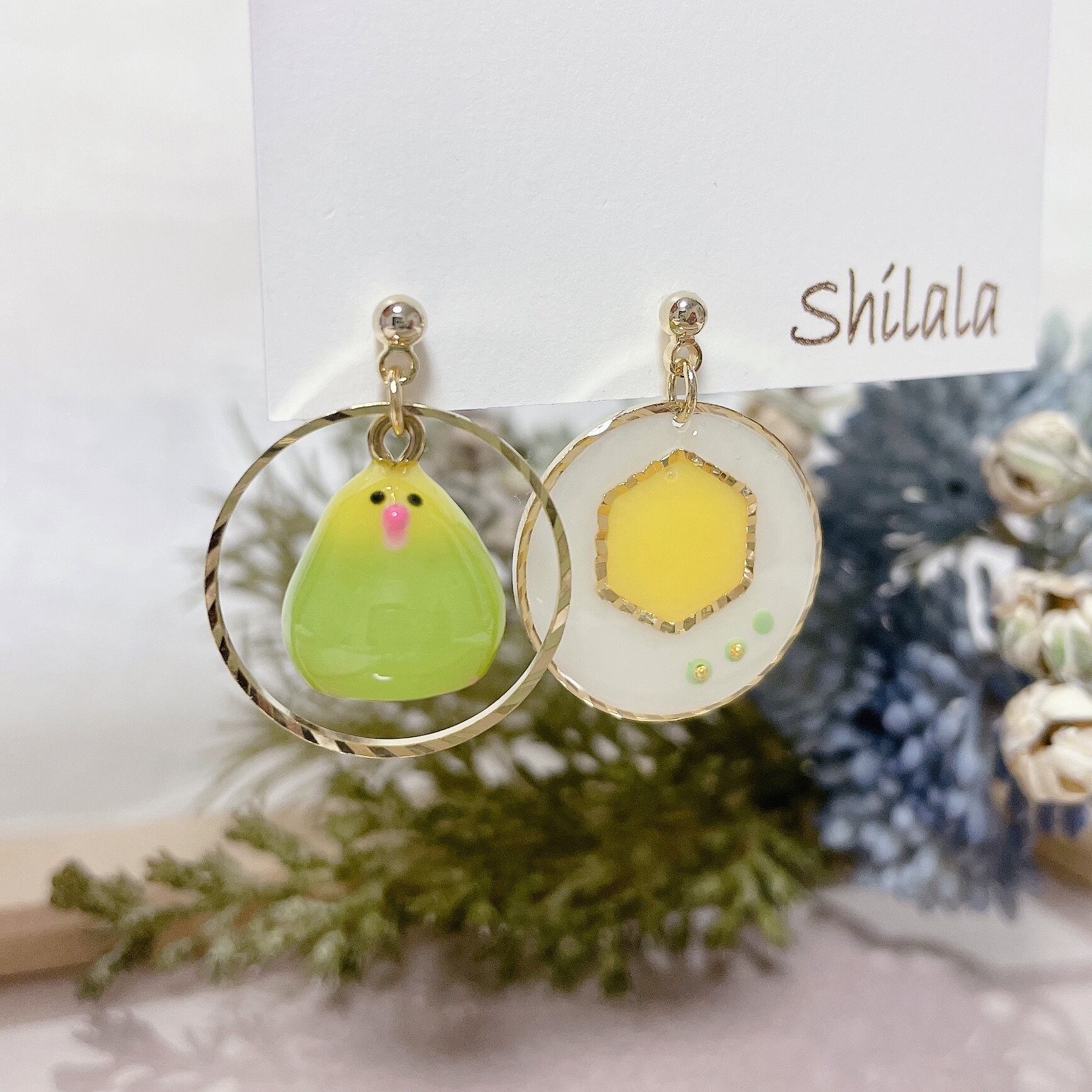こちらも対面販売などで、どちらの耳にも鳥さんをぶら下げたいというお声から、実現しました*
