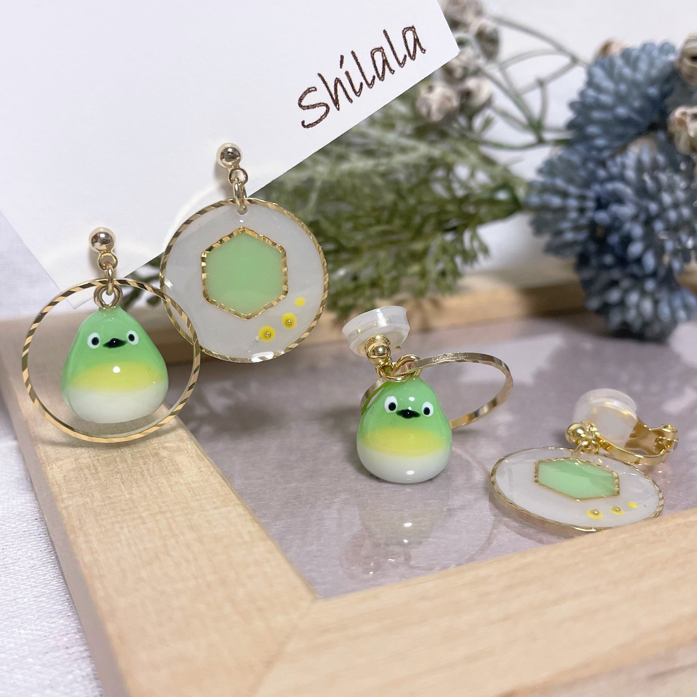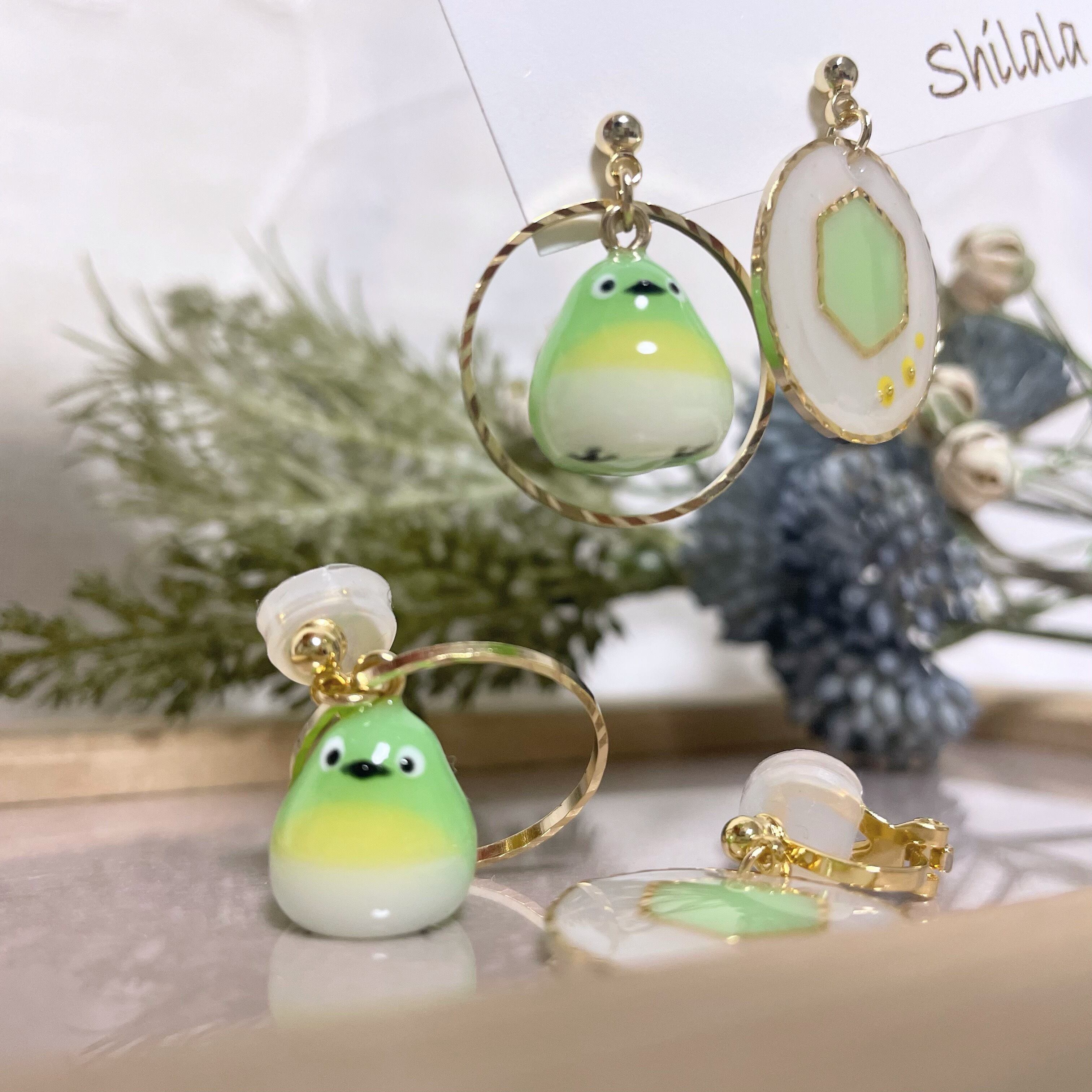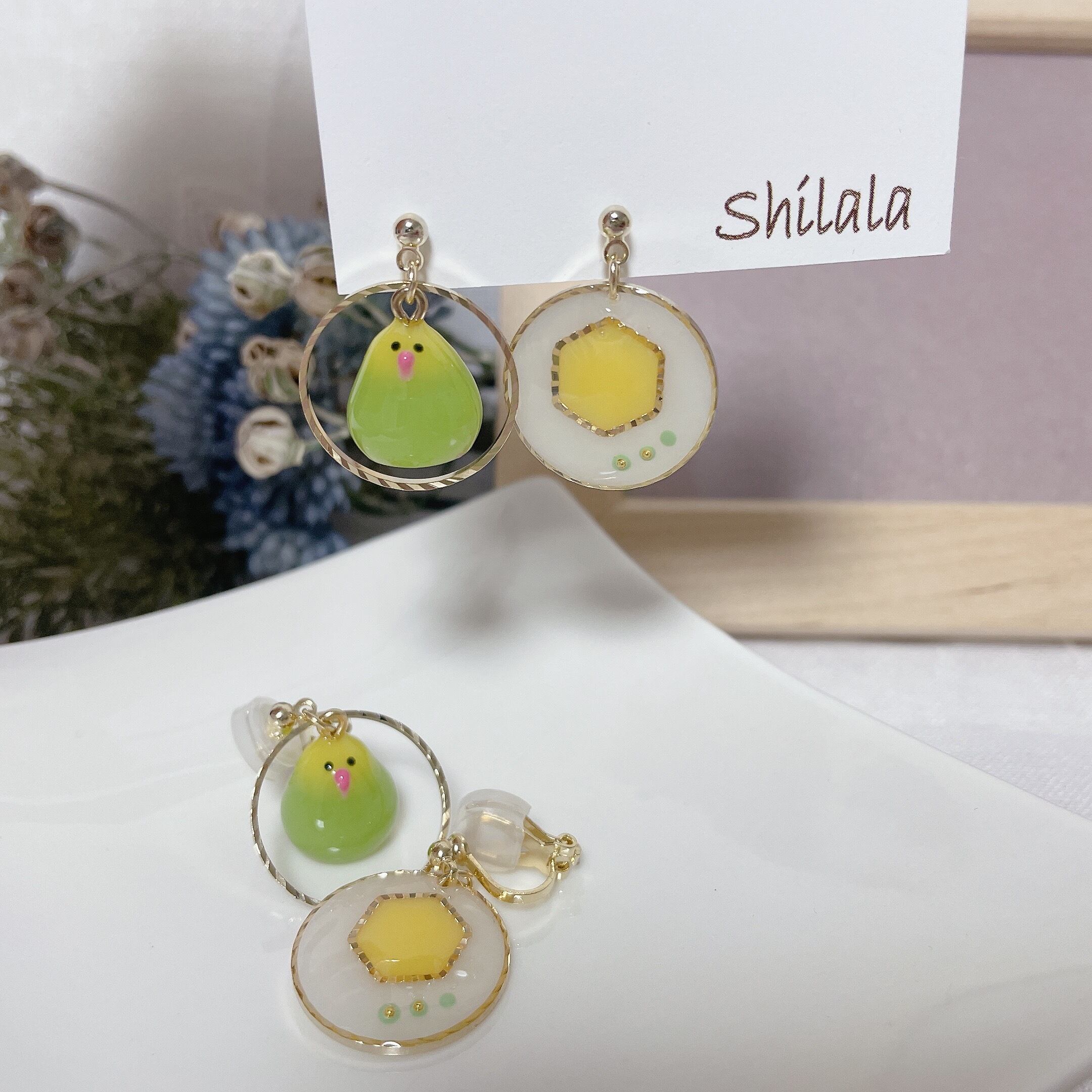 こちらも対面販売などで、どちらの耳にも鳥さんをぶら下げたいというお声から、実現しました*