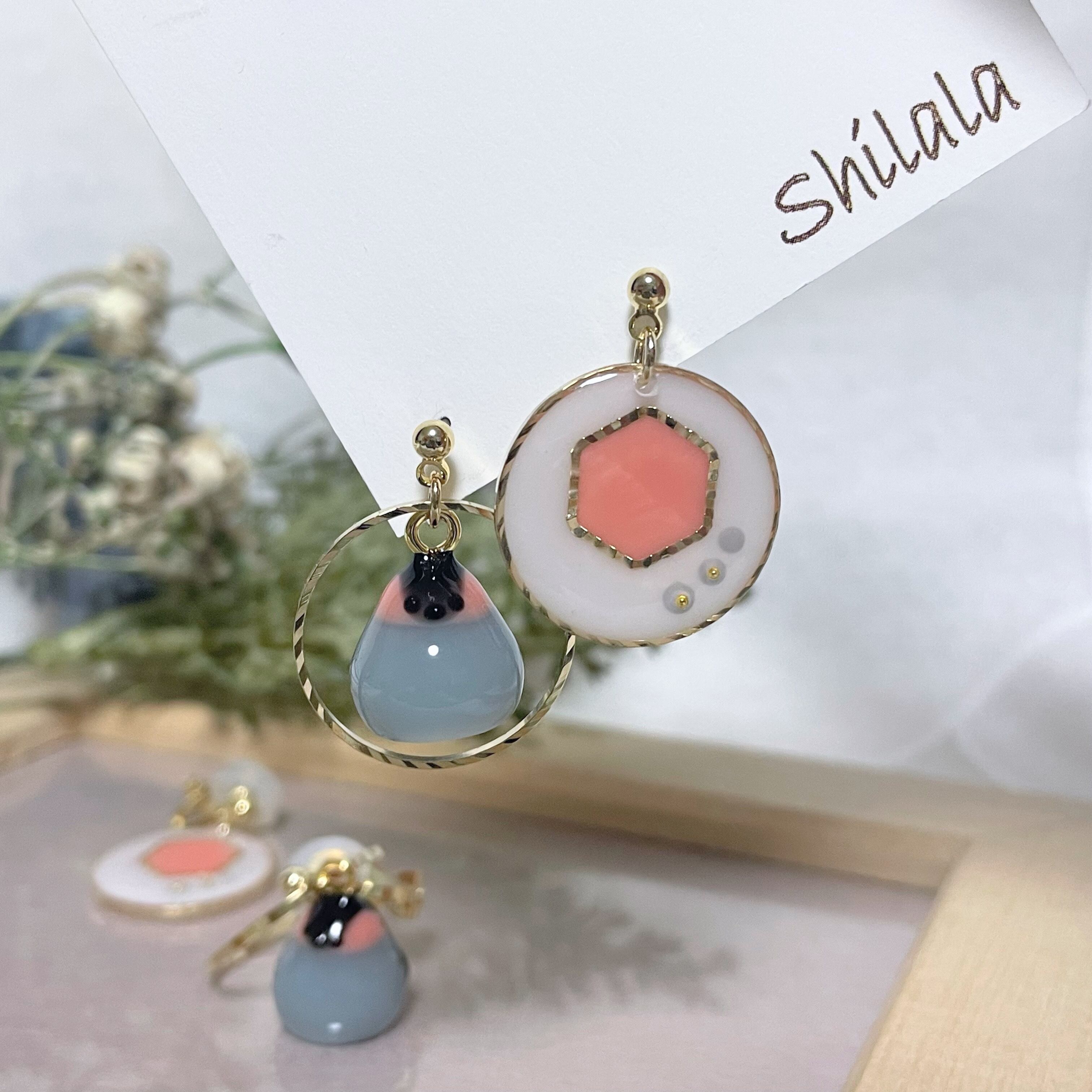 こちらも対面販売などで、どちらの耳にも鳥さんをぶら下げたいというお声から、実現しました*